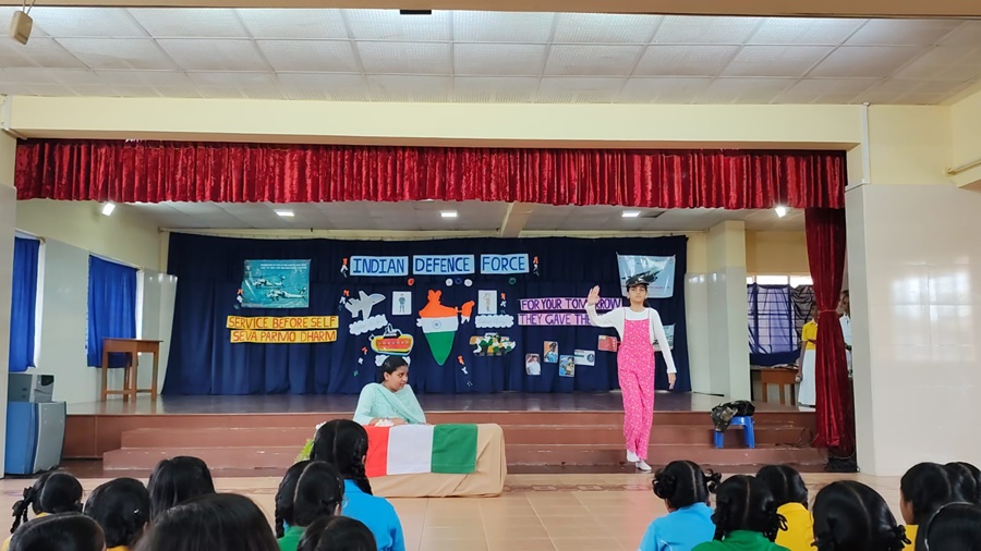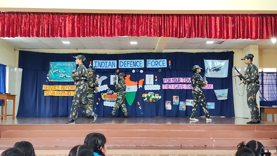 The students of Class 7 ‘B’ conducted a meaningful assembly on the theme Indian Defence Force. They highlighted the noble qualities required to join and support the defence services and expressed their respect for the armed forces. The students also paid homage to the martyrs through heartfelt tribute songs, saluting their courage and sacrifice for the nation.
