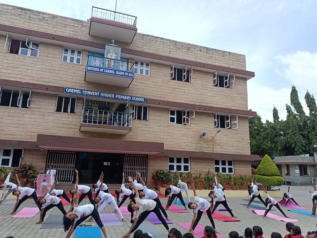 Yoga teaches us discipline and self-control',with this the students of class 1 to 7th performed Yoga asanas on International Yoga Day
